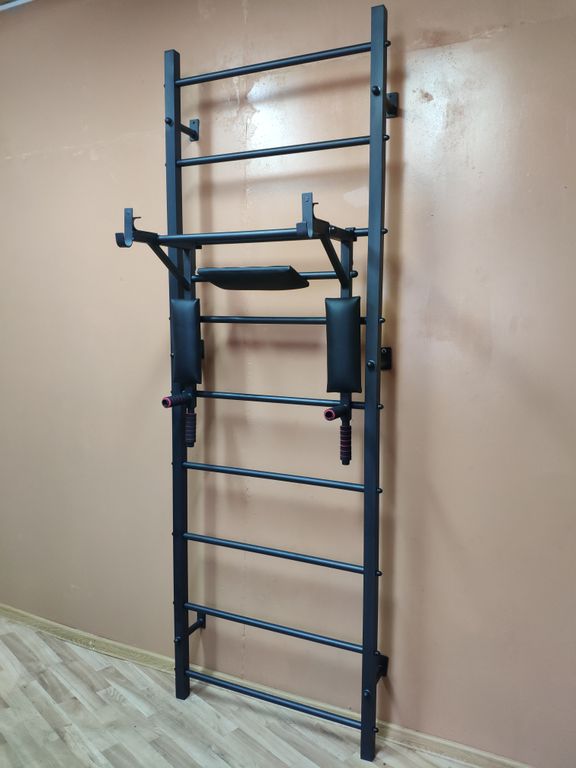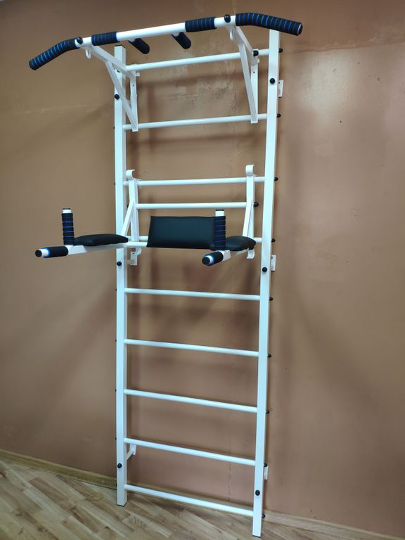 Лестница, турник с 3 хватами (навесной), брусья + пресс + держатель штанги (навесные) |